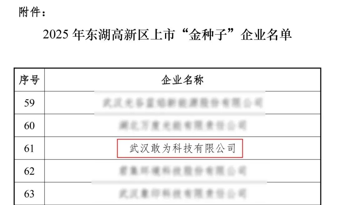 近日,武漢東湖新技術(shù)開發(fā)區(qū)金融工作局公布了《2025年東湖高新區(qū)上市“金種子”企業(yè)名單》,敢為科技憑借其卓越的創(chuàng)新實(shí)力與高成長(zhǎng)潛力,成功入選該名單,成為新一批東湖高新區(qū)上市后備重點(diǎn)企業(yè)。
